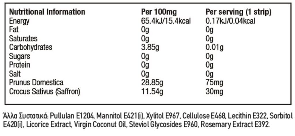Το VITASTRIPS FOCUS είναι ένα συμπλήρωμα διατροφής που περιέχει φυτικά εκχυλίσματα κρόκου, δαμασκηνιάς και δενδρολίβανου. Αυτά τα συστατικά έχουν κλινικά αποδειχθεί ότι υποστηρίζουν τη μνήμη, τις γνωστικές ικανότητες και την συγκέντρωση. Ο κρόκος, για παράδειγμα, έχει αναγνωριστεί για τις θετικές επιδράσεις του στη μνήμη και τη νευροπροστασία.